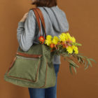 Berlin Olive bag with a separate inner pocket in waterproof fabric and leather handles that make it very resistant and very light!